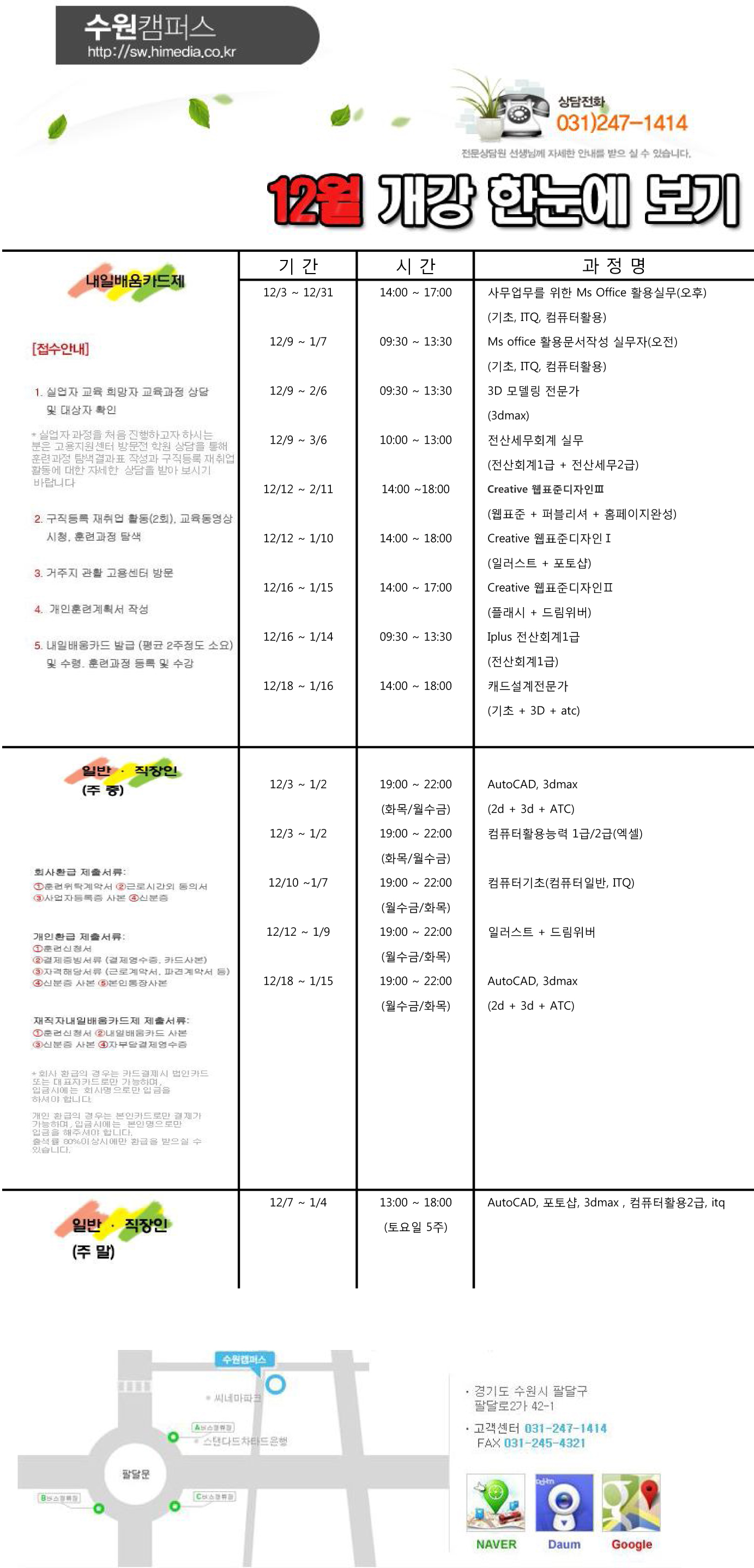 12월 개강 한눈에 보기