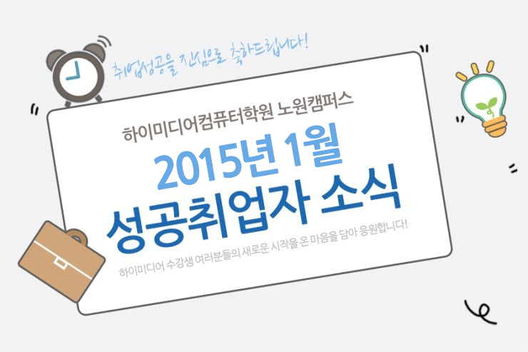 하이미디어컴퓨터학원 노원캠퍼스 2015년 1월 성공취업자 명단입니다.